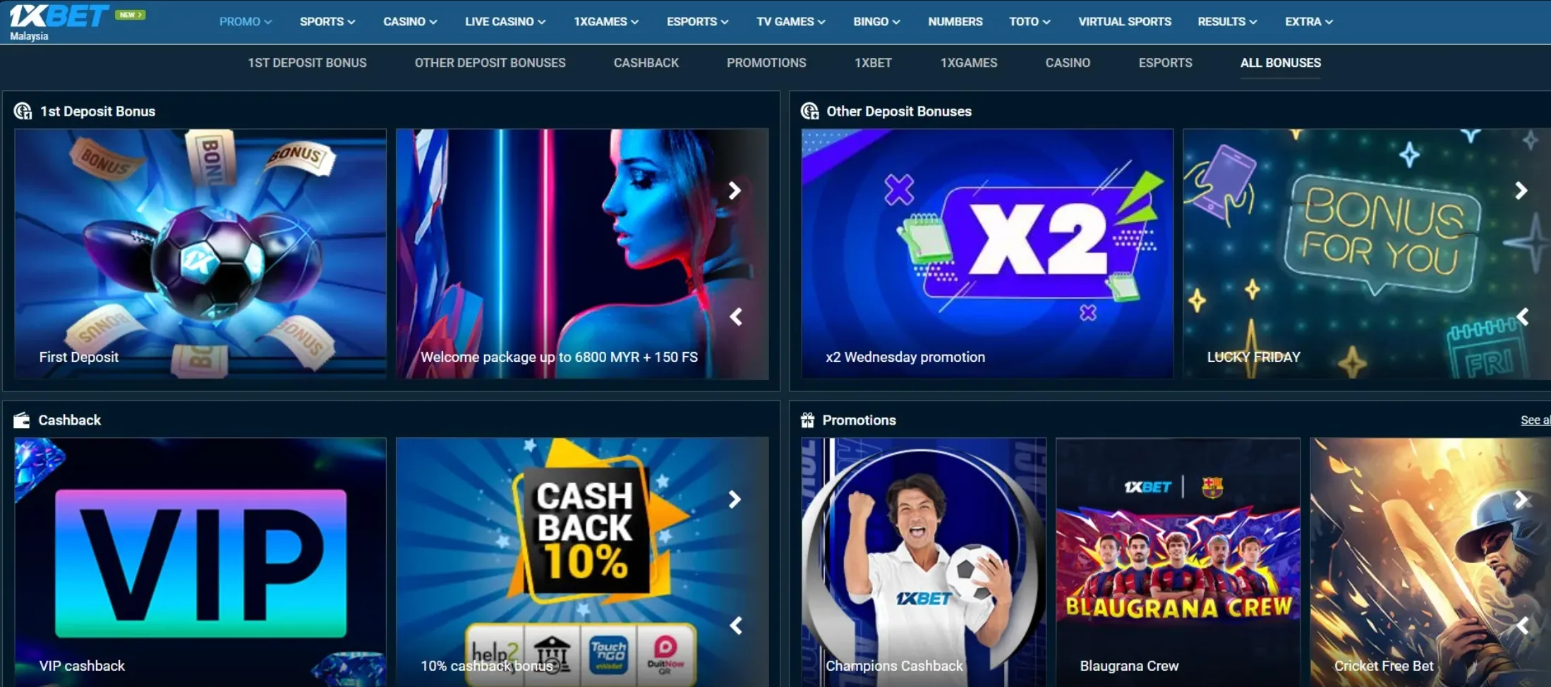 - Welcome Package: New players can claim up to 6385 MYR and 150 free spins as part of 1xBet’s welcome offer. Dive deeper into this with our 1xBet Malaysia bonuses overview.